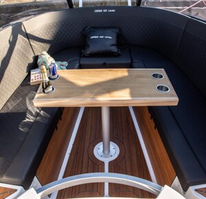 Non solo offre la piattaforma da bagno con scaletta, zona prendisole a poppa e una spaziosa prua con cuscini a forma di U che possono essere convertiti in uno spazio prendisole facilmente regolabile con un tavolo. Grazie a questa soluzione potrai goderti anche la zona prendisole mentre utilizzi il piano del tavolo.